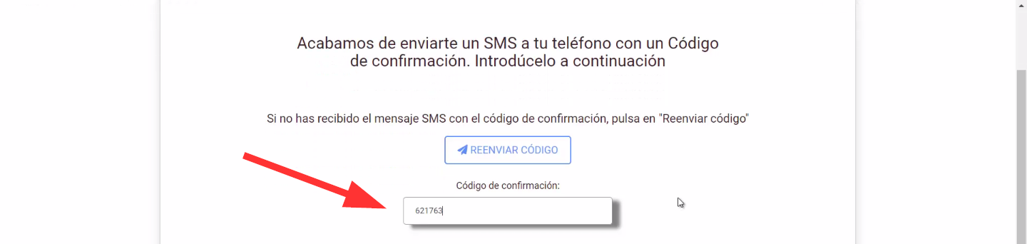 Para comenzar, ingrese el código de confirmación recibido por SMS en el número de teléfono móvil proporcionado durante la solicitud del certificado digital.