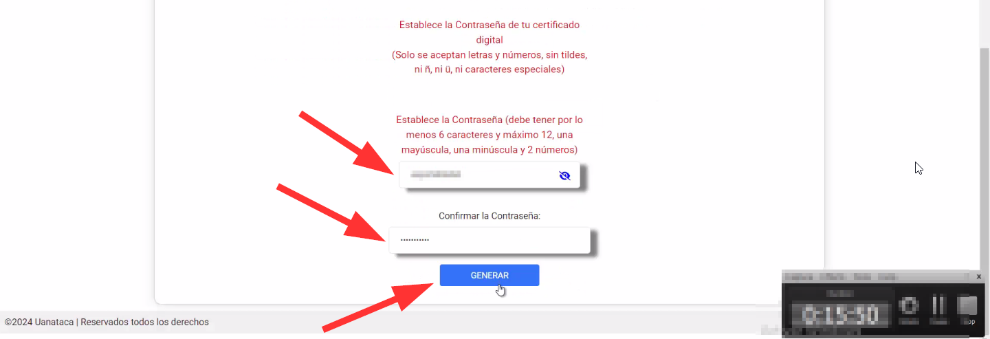 Repita la contraseña en el campo de abajo y luego haga clic en el botón "Generar".