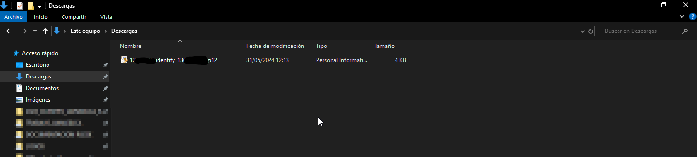 Por defecto, el archivo del Certificado Digital se guardará en la carpeta “Descargas” del equipo.