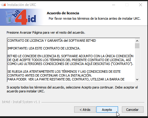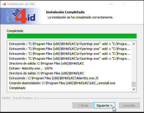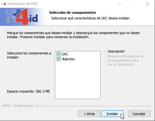 3. Asegúrate de que estén marcados los dos componentes: UKC y 4identity, y haz clic en "Instalar".