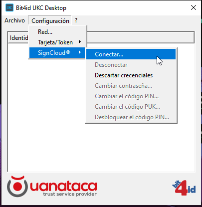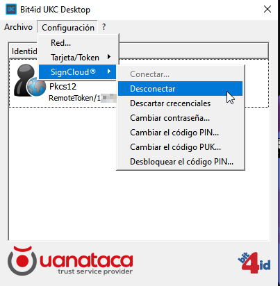 Si deseas cerrar sesión en el sistema SignCloud, debes utilizar la opción “Desconectar” en la pestaña de configuración de la aplicación UKC.