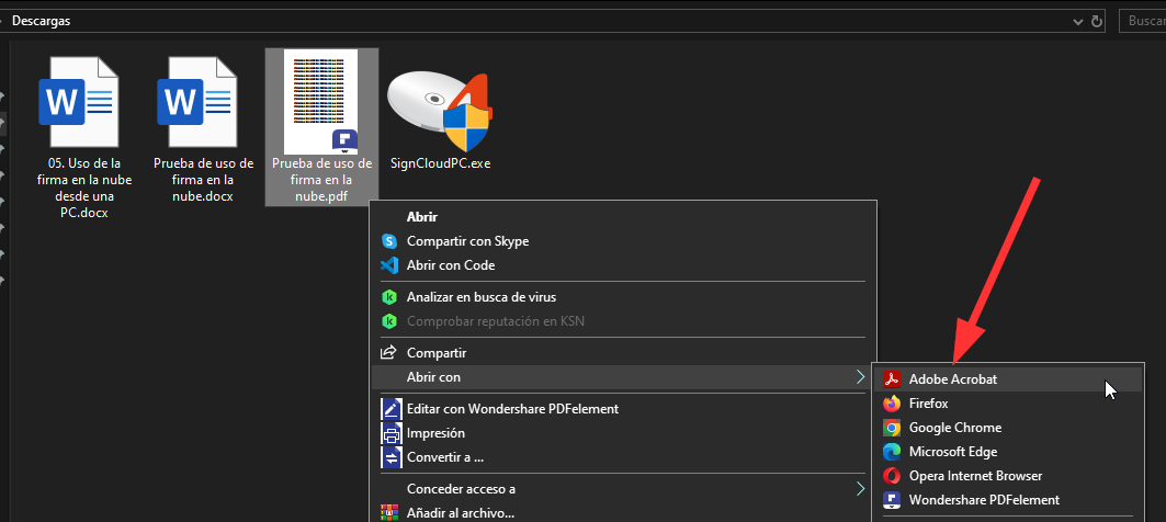 1. Haz clic derecho en el documento PDF y selecciona “Abrir con” > “Adobe Acrobat”.