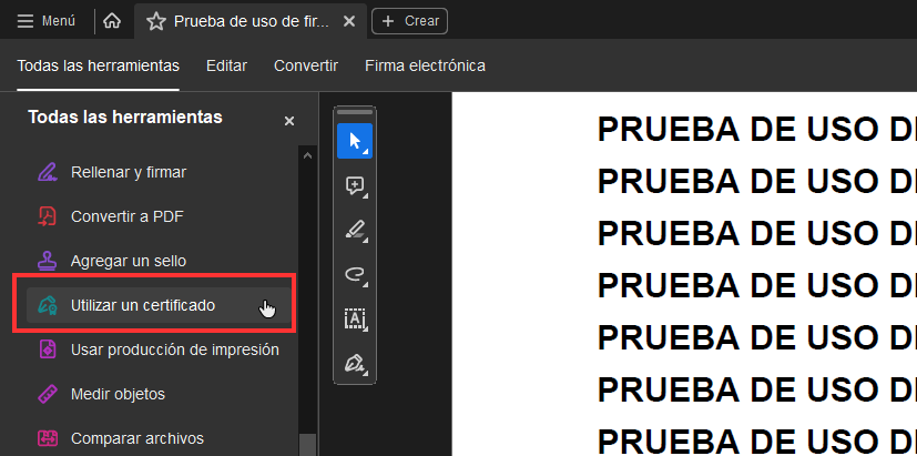 3. Busca y selecciona la opción “Utilizar un certificado”.