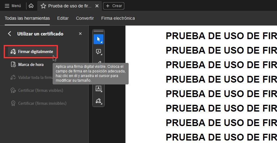 4. Luego, haz clic en “Firmar digitalmente”.