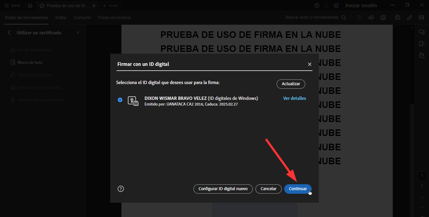 4. A partir de este momento, el certificado digital remoto se encuentra cargado en el sistema y listo para ser utilizado.