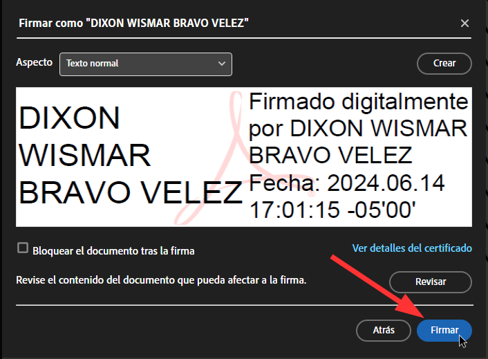 7. Luego, haz clic en “Firmar”.